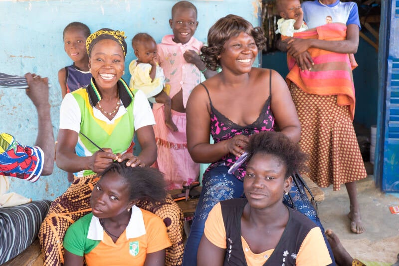 Ce salon de coiffure est surtout un lieu de rassemblement pour les femmes le dimanche, tandis que les hommes vont boire le dolo.